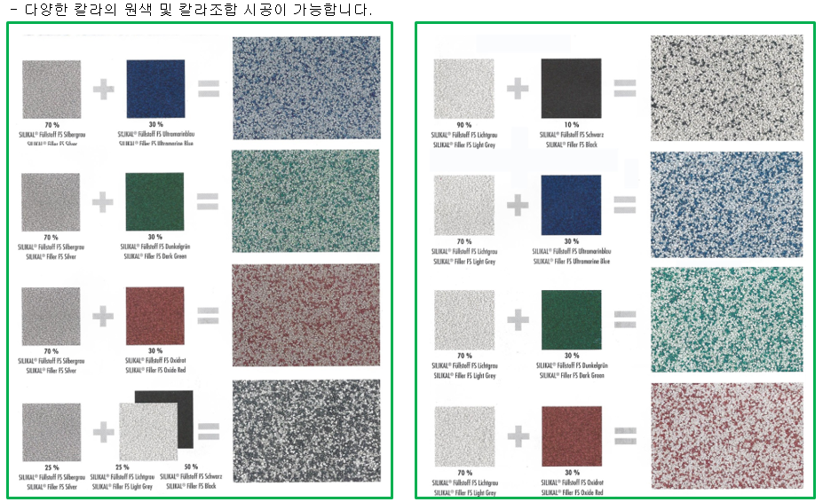 실리칼 MMA 수지와 칼라규사,파우더 등을 이용한 친환경 MMA 바닥재로
