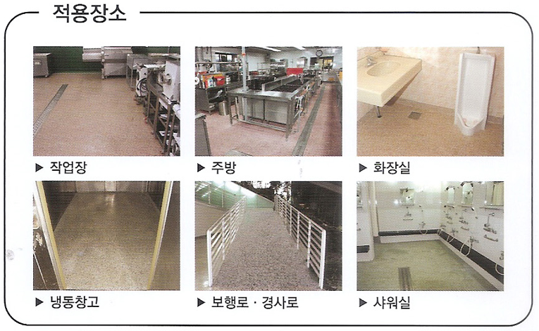 다양한 색상 연출과 우수한 미끄럼 방지 효과의 바닥재 입니다
