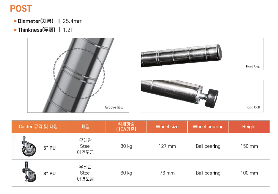 Post(기둥)은 원형 파이프의 형태로 제작되었습니다.
