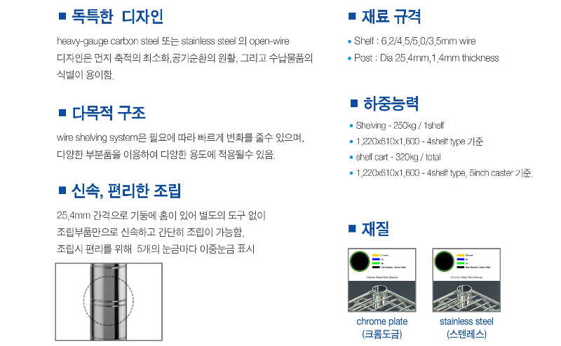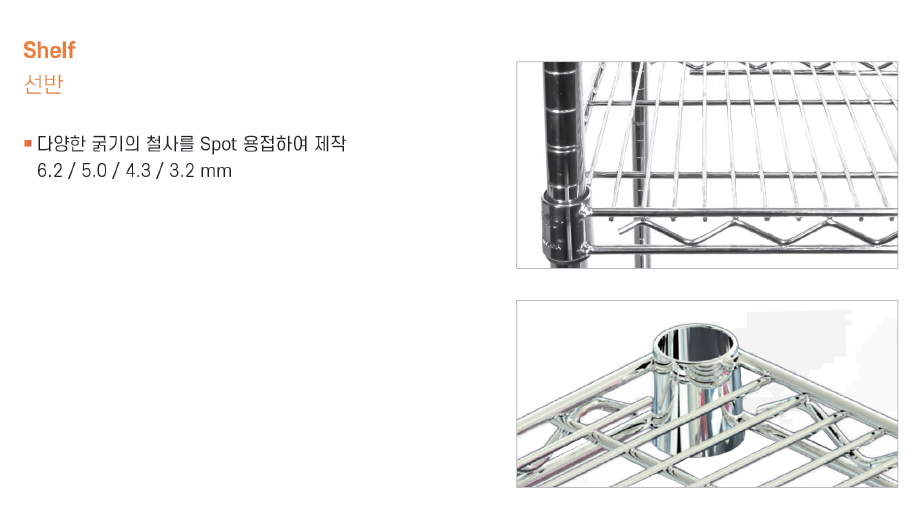 Shelf(선반)은 여러 굵기의 철사를 Spot용접방식으로,
