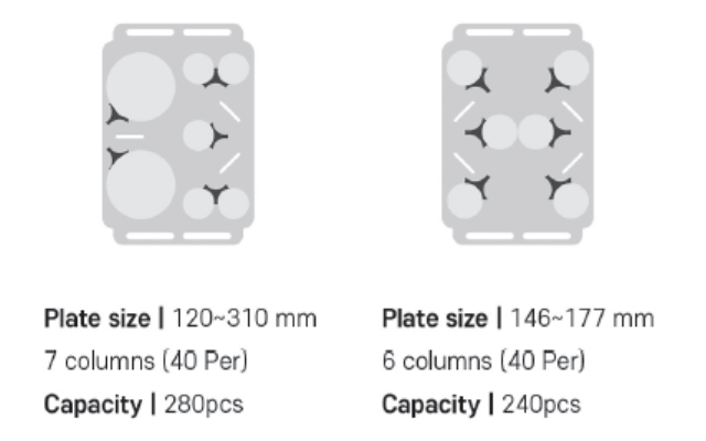 • 구    조  : 115mm ~ 310mm까지의 디너 plate와 platter.