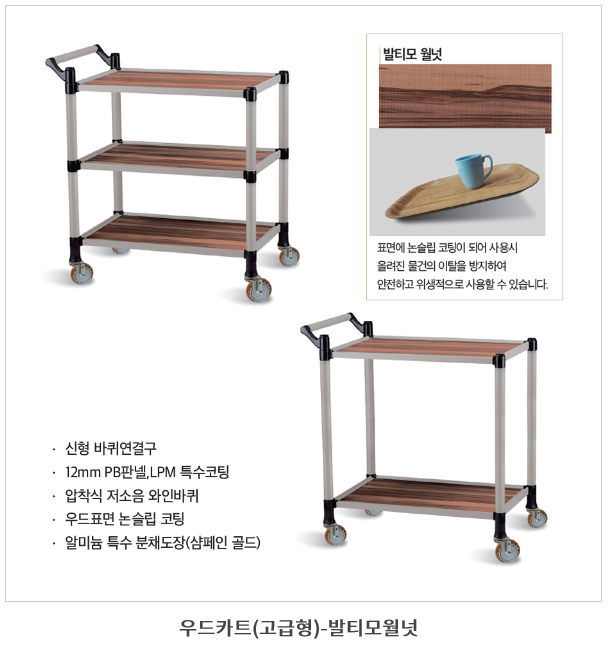 ◇ 고급형 2단 | 3단 우드 서빙카트- 발티모 월넛