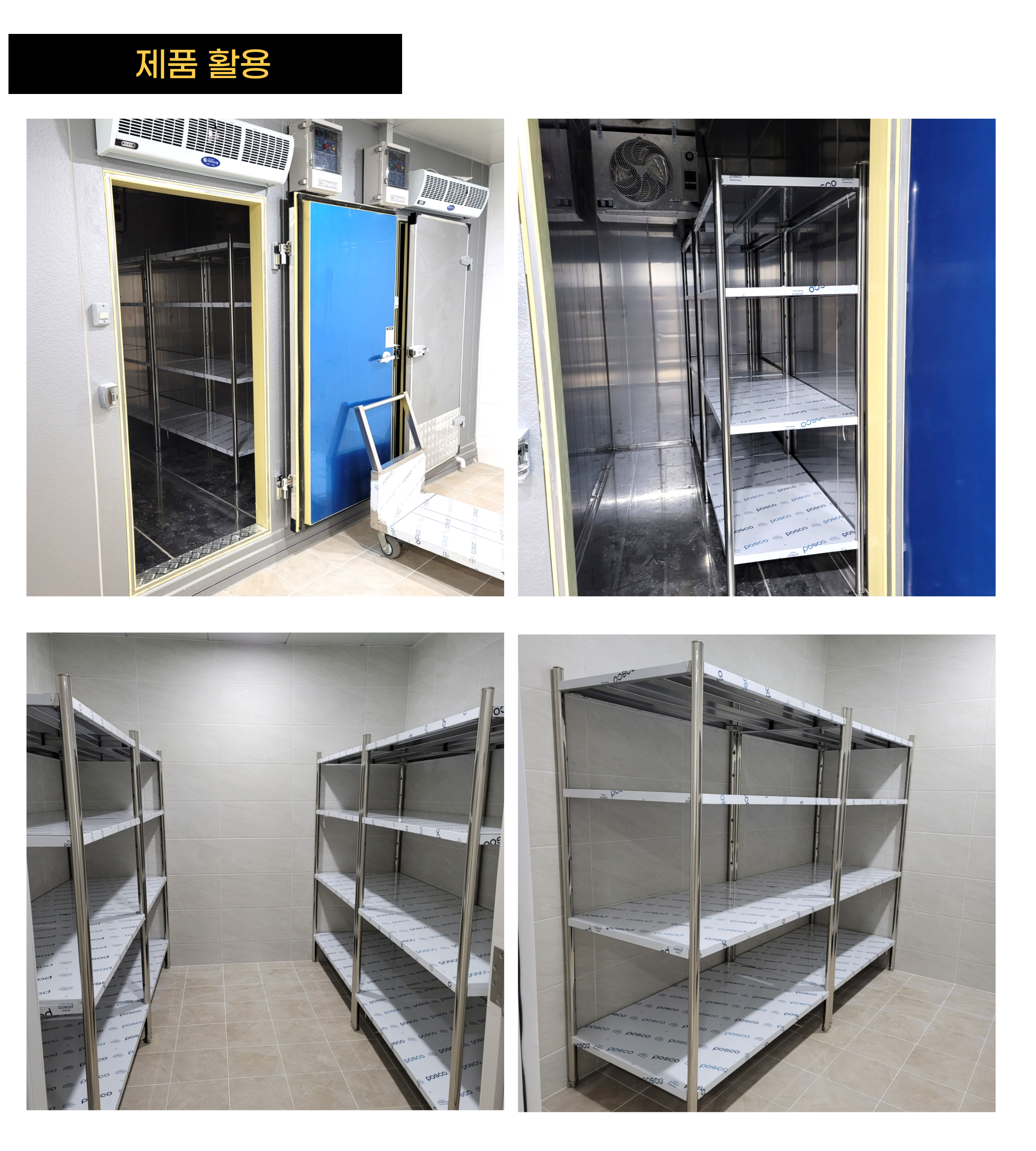 업소 창고, 냉동고, 주방 등의 식기 및 식자재를 적재 보관할 수 있는 다단식 선반입니다.