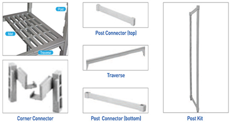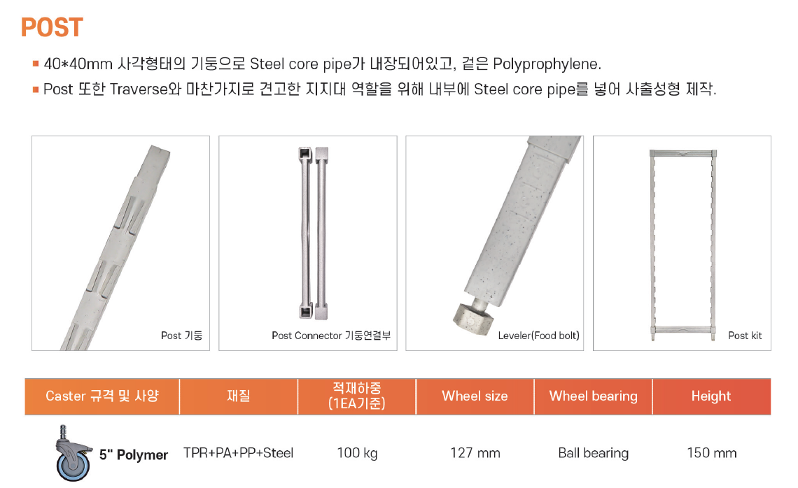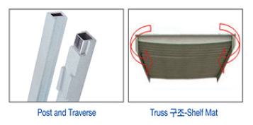 하중을 위한 중요 부분은 기둥(Post), 선반 가로대(Traverse), 선반 매트(Mat)이며,